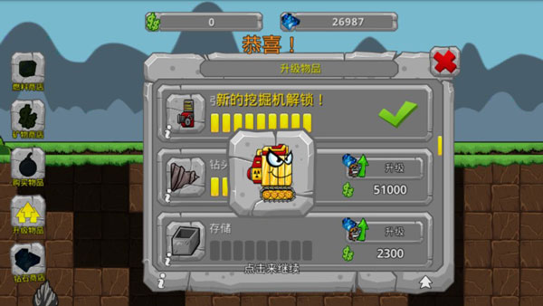 3.駕駛這臺機器不斷的進行挖掘,并且擁有非常簡便的游戲玩法.