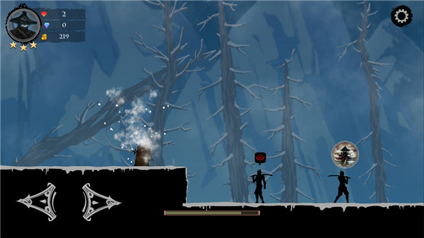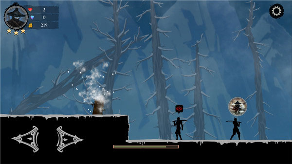 橫版2D戰斗場景,黑夜之中的冒險,在這條路上加快沖刺,忍者救人。