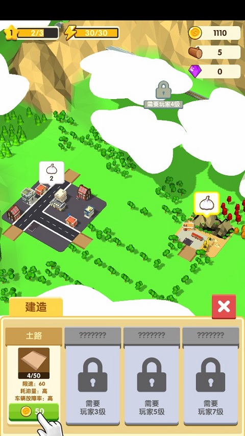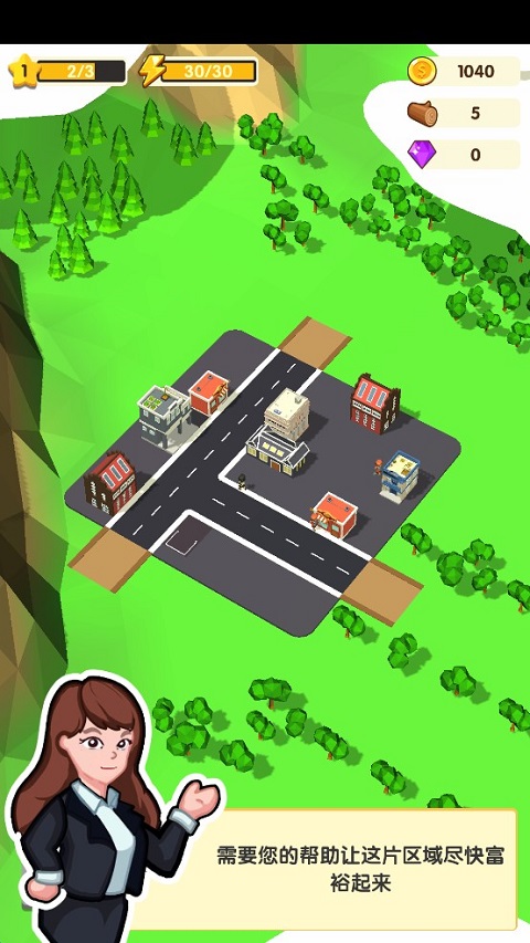 6、城市升星還需用到建筑材料,點擊地圖上的綠色樹木,即可砍伐,砍伐到一定數量,便可將樹清理掉,同時也能獲得建筑材料。在往后的道路建設中,同樣需要依靠這樣的操作,清除阻礙。