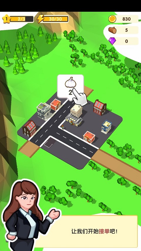 4、路修好后,開始接單!如圖所示,在城市區域點擊“氣泡”可以選中訂單,待你選中訂單后會自動選擇城市可用車輛進行運輸。