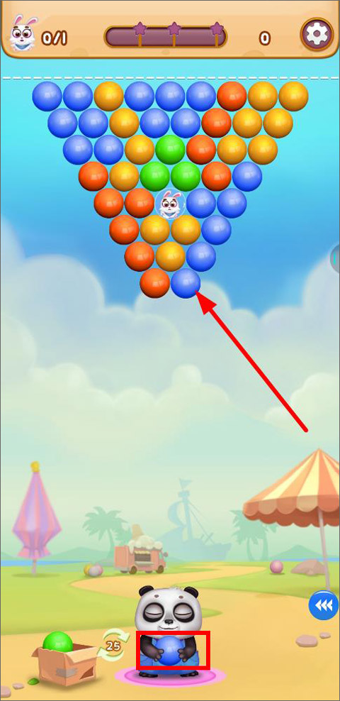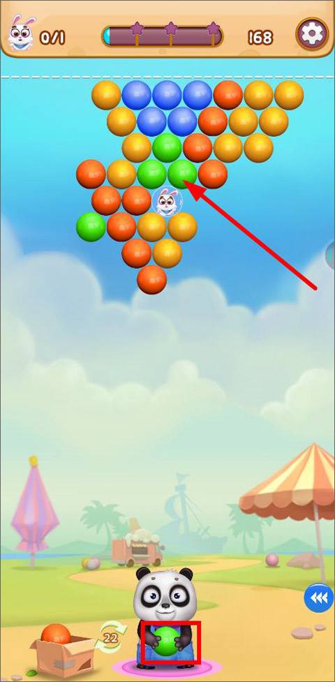 2、在游戲中需要控制萌熊擊落相同顏色的球體,解放兔子;