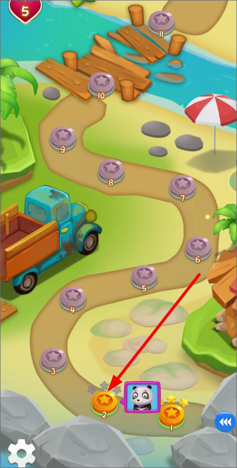 1、打開萌熊消消樂游戲,進(jìn)入游戲頁(yè)面,游戲主頁(yè)面有設(shè)置以及關(guān)卡功能鍵,點(diǎn)擊通關(guān)關(guān)卡即可進(jìn)入游戲;