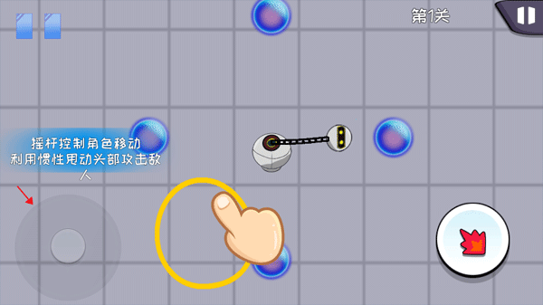 3、這款游戲的玩法分為兩種,接下來介紹第一種:就是通過搖桿來控制角色移動,并利用慣性甩動頭部攻擊敵人,將里面四個敵人全部用頭部來攻擊完就可以進入下一關。