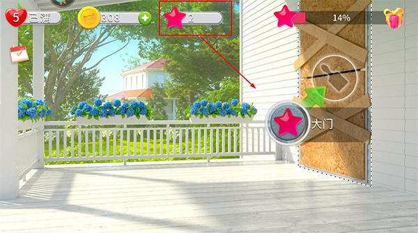 消除游戲通關(guān)后,就可以獲得裝修家園的小星星。
