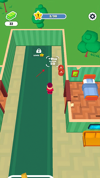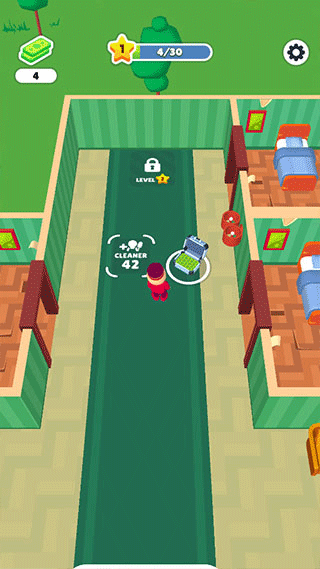 3、安排好房間給客人,他們住完后,需要及時清理打掃,才可以繼續接待客人,移動小人靠近待清理的地方,就可以自動清理了。