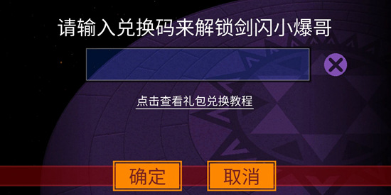 點(diǎn)擊后會(huì)跳出下圖的兌換框,將爆米花商店內(nèi)換到的劍閃小爆哥兌換碼填進(jìn)去,就可以解鎖劍閃小爆哥了!