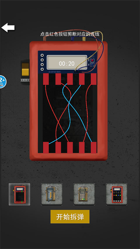 3、拆彈模式點擊紅色按鈕剪斷對應的連線。