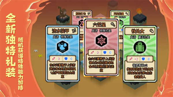 5、獨(dú)特的禮裝系統(tǒng),能讓玩家的角色隨機(jī)的獲得各種特殊的能力,讓每場(chǎng)戰(zhàn)斗都獨(dú)一無(wú)二。