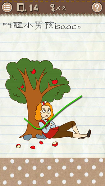 第14關、搖動手機,讓蘋果掉下來砸醒牛頓,過關。