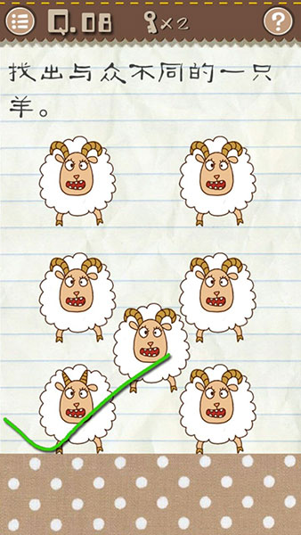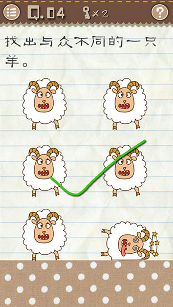 第4關、晃動手機,然后會有一只羊暈倒,就是它。