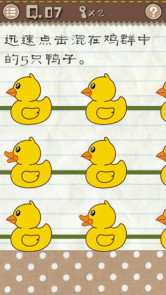 第7關、看到鴨嘴的就是鴨子了,記住只要點擊五只,多點擊或是少點擊都失敗。