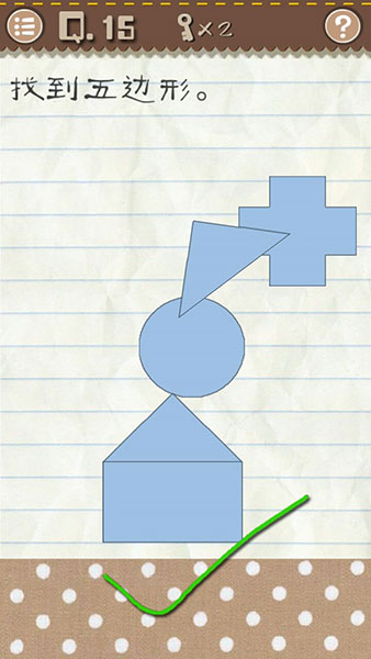 第15關、將三角形和長方形的兩個圖案組合起來就是五邊形了。