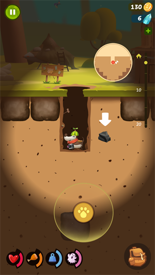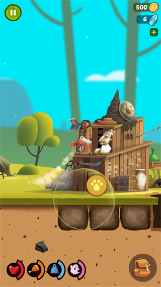 2、在關卡中會出現許多有縫隙的地方,小狗一不注意就會掉下去,但是細心的玩家就會發現游戲中那些場景道具其實是可以移動的。玩家可以將道具推到合適的縫隙處填補縫隙,減少掉下去的幾率。