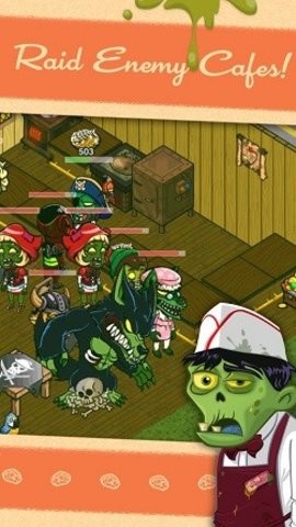 4、在與其它餐館競爭時,你可以讓你的僵尸殺死它們,收集不同的僵尸,并獲得獎品。這個游戲還提供各種各樣的食物。