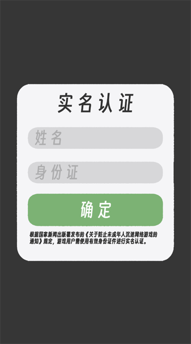 點擊打開游戲界面通過顯示出來的:根據國家新聞出版署發布的《關于防止未成年人沉迷網絡游戲的通知》規定,游戲用戶需使用有效身份證件進行實名認證。