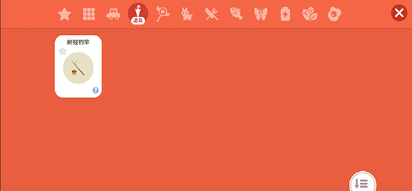 5、打開右下角的背包,打開道具頁面,將樹枝魚鉤裝備上;