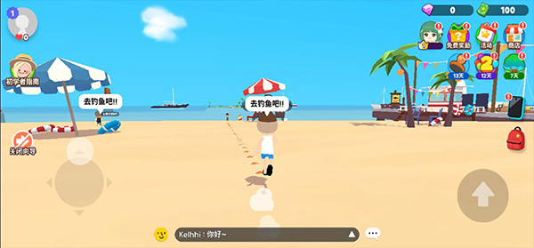 4、根據任務提示來到沙灘角色旁邊,我們將獲得一個魚竿;
