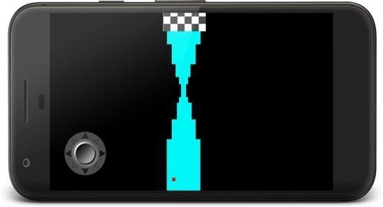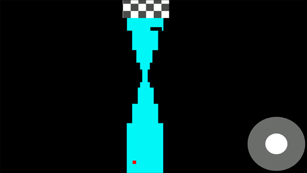 2、游戲主角是一個小點,通過控制它不碰到兩邊墻壁到達終點即為為勝利