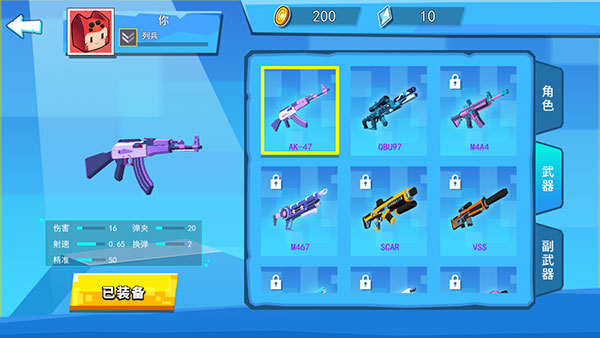 2、點擊【角色】還可以切換角色和各種武器、副武器。