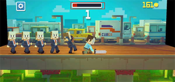 3、游戲上方還有一個進度條,進度條沒了就游戲結束,或者是被敵人攻擊游戲也會結束;