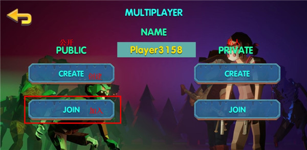 2、在公共房間和私人房間選擇創建房間或者加入房間;