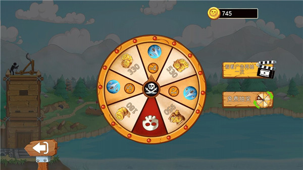 1、首先從本站下載并安裝火柴人海上戰(zhàn)爭,并進入游戲,根據(jù)手勢、移動屏幕將拋線拖至合適位置,并發(fā)射攻擊