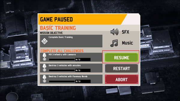 1、進入游戲后點擊resume開始游戲