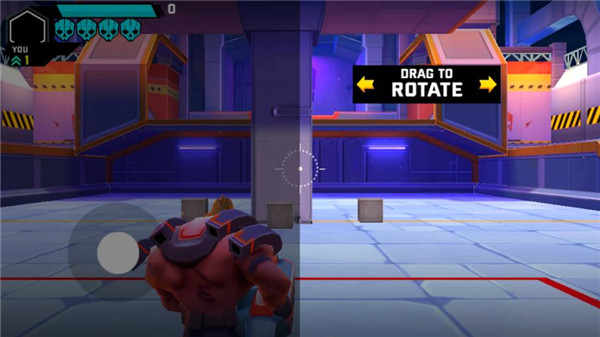 4、然后根據(jù)上方箭頭控制人物完成任務(wù),敵人出現(xiàn)時將靶心對準敵人即可自動射擊。