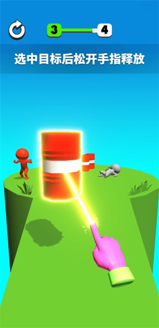 1、實際操作方法非常簡單,移動手指可以選擇抓取的目標,可以是游戲中的任何物體,選中目標后松開手指即可完成釋放。