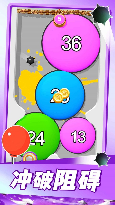 2、沖擊上方氣球的障礙,將會(huì)帶來(lái)非常強(qiáng)大的阻力,玩家需要對(duì)關(guān)卡中的氣球進(jìn)行規(guī)劃和大小的設(shè)定