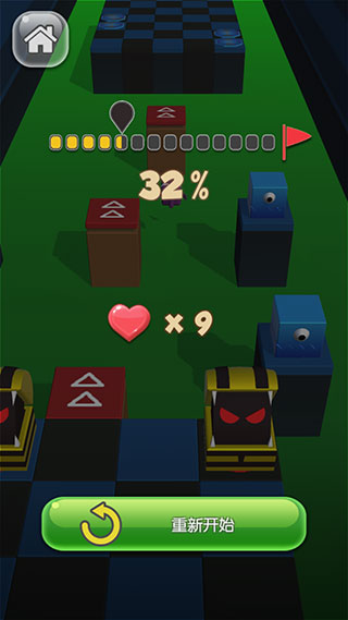 4、如果不小心掉進陷阱或者撞上障礙就需要消耗一顆紅心重新開始。