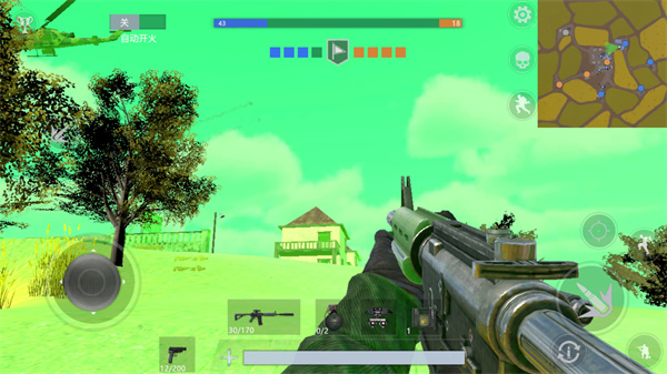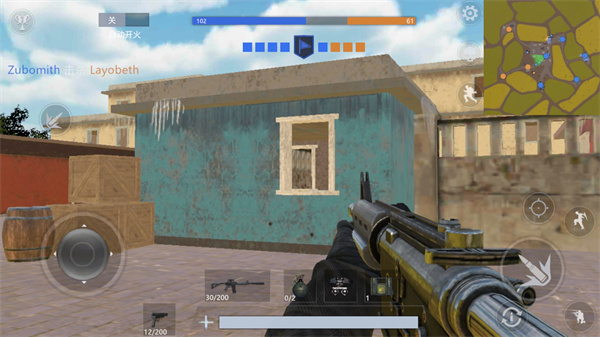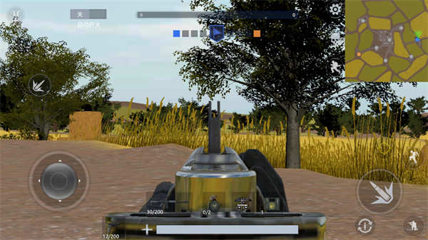 5、進入游戲我們需要占領據點,下方虛擬按鍵玩家可以用來控制人物角色移動以及射擊;