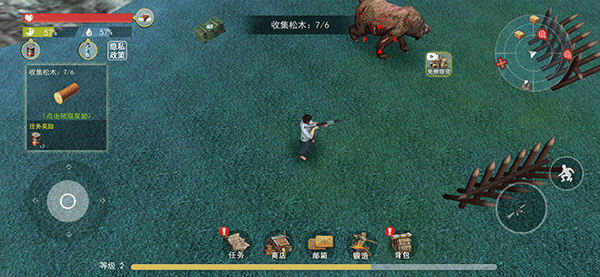 3、每一次的探索冒險都是和能刺激的,島嶼上面有著很多的野獸還有不同的危險需要去躲避或者戰斗。