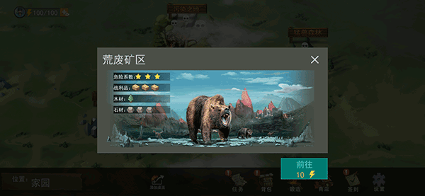 游戲完全是免費的,所以,要獲取強力武器可以看段廣告就能免費獲取了,一開始按照教程走,后面就自由發揮了,地圖內容是很豐富的,共有荒廢礦區、污染之地、家園、猛獸森林四大區域,每個區域都不太相同,需要玩家謹慎對待;