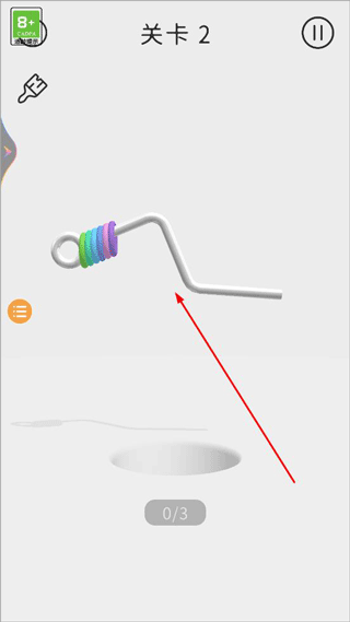 1、打開游戲,點(diǎn)擊開始,把套著圈圈的管子旋轉(zhuǎn)對準(zhǔn)下方的洞口;