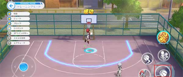 2、當(dāng)角色到達(dá)指定地點(diǎn)時(shí)就可以點(diǎn)擊右下角投籃的圖標(biāo)按鈕進(jìn)行投球。同樣當(dāng)對方球員進(jìn)行投籃時(shí),也能點(diǎn)擊這個(gè)按鈕進(jìn)行攔截。此外,當(dāng)對方球員投籃失敗籃球反彈時(shí),還能用下圖按鈕,接住籃球。