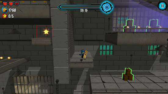 除了螺釘外,玩家還需要找尋每個關卡中的5個星星,收集一定數量的星星可以解鎖其他的章節,忍者裝備有地圖可以提示星星的位置,不過購買時機建議延后,前期先買鉤子、雙節棍、吸盤之類的道具比較實用,后面在購買地圖找那些比較偏僻的星星。