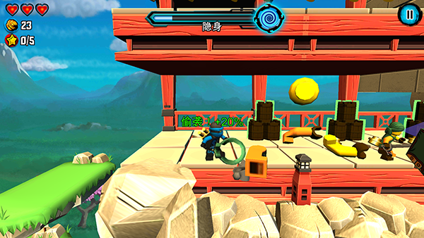 游戲過程中玩家的角色通過偷襲、隱身、躲避陷阱等等手段來增加隱身能量值,能量條滿了之后玩家就可以進行獎勵關卡,可以獲取螺釘獎勵。