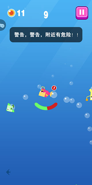 1、點擊屏幕滑動方向,魚兒就會一直游行,松開魚兒就會停止。