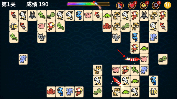 4、當你將兩個相同的火箭進行配對并消除之后,它會幫助你消除兩個小動物。