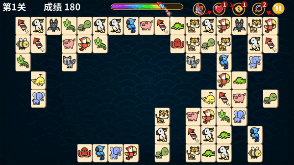 動物世界連連看是一款十分合適解悶的有趣消除游戲,游戲玩法簡便,關卡豐富,游戲的玩法真的不用多說了,兩個圖片最多拐兩個彎兒能連起來就ok,玩家需要根據連線圖片消失后其他圖片的運動方向,游戲內共設置了9個不同難度的關卡,屏幕上方的“方向”箭頭指明了本關的運動方式。