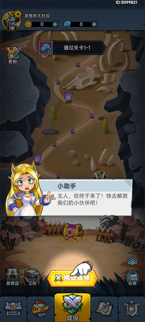 1、下載安裝好游戲,點(diǎn)擊挑戰(zhàn)首領(lǐng)開始游戲