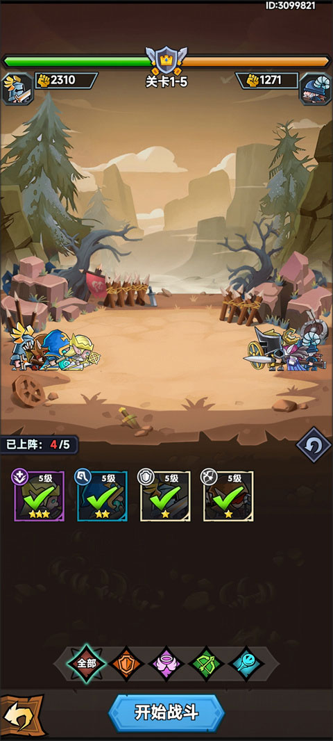 2、點(diǎn)擊選擇你的出戰(zhàn)英雄,合理搭配陣容會(huì)有更好的戰(zhàn)斗效果;
