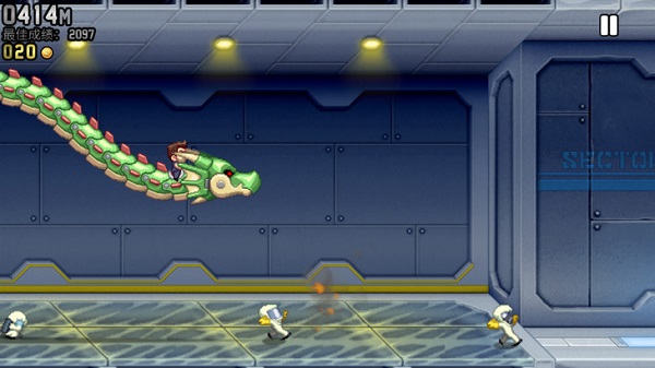 火箭飛人最新版是一款充滿了刺激和娛樂元素的橫版跑酷射擊游戲,實際上就是瘋狂噴氣機,游戲采用精美細膩的動畫畫風打造,各種道具功能華麗的特效體現,搭配金屬搖滾風格的游戲背景音樂,帶給玩家很強的視覺和聽覺游戲效果的體驗。