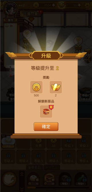 6、達成成就后便可升級,然后可以獲得獎勵和解鎖新菜品,除此之外,游戲中還有很多玩法等著玩家下載體驗。