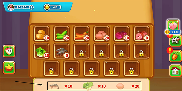 3、卡通趣味的游戲畫風(fēng),你的農(nóng)場需要更多的農(nóng)作物種子,并且很多美食都需要特定的材料。
