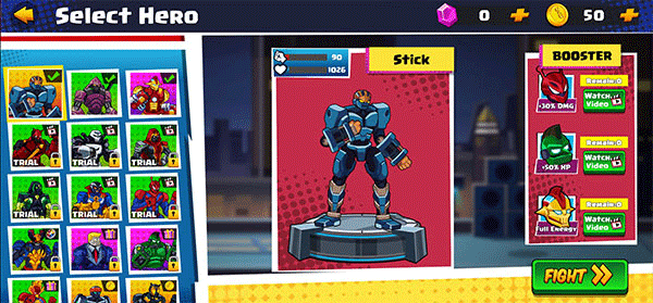 2、選擇挑戰的關卡后,開始選擇你的機器人英雄;