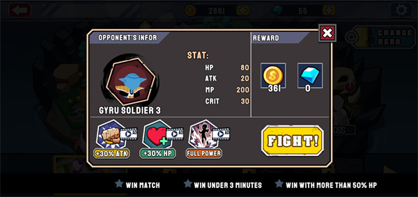 4、選擇好關(guān)卡,點擊FIGHT即可開始闖關(guān);