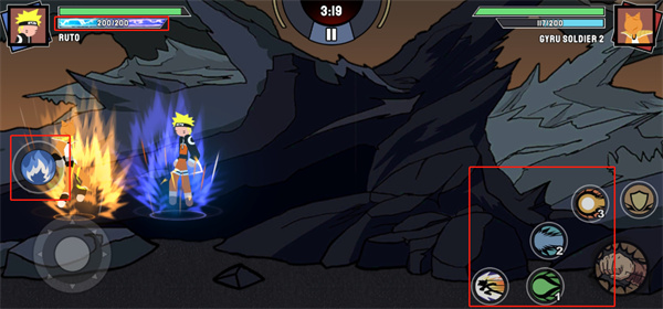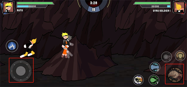 5、通過左下角的搖桿來進行移動,通過右下角的攻擊按鈕來進行攻擊;