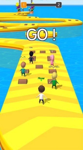 3、在賽道上跑步,每個選手都需要收集地面上的顏色方塊,記住越多越好。